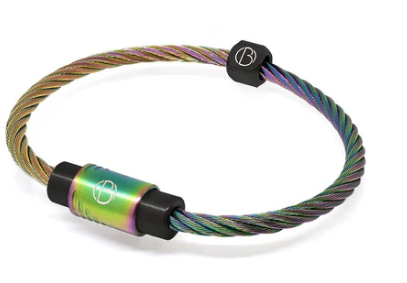 This is a truly unique multicoloured coating, with each piece having its own mix of Rainbow colours featuring stunning blends of Greens, Pinks, Yellows and Purples. This unusual coating was developed to be “one of a kind”, a truly distinctive process where no two bracelets will ever look the same. The advanced coating is created by an Arc deposition process where lightning is tightly controlled in such a way to evaporate a titanium ceramic alloy onto the parts to create a colourful, hard wearing and durable product that will stand the test of time.