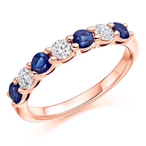 Claw Set Round Brilliant Diamond & Blue Sapphire Eternity Ring