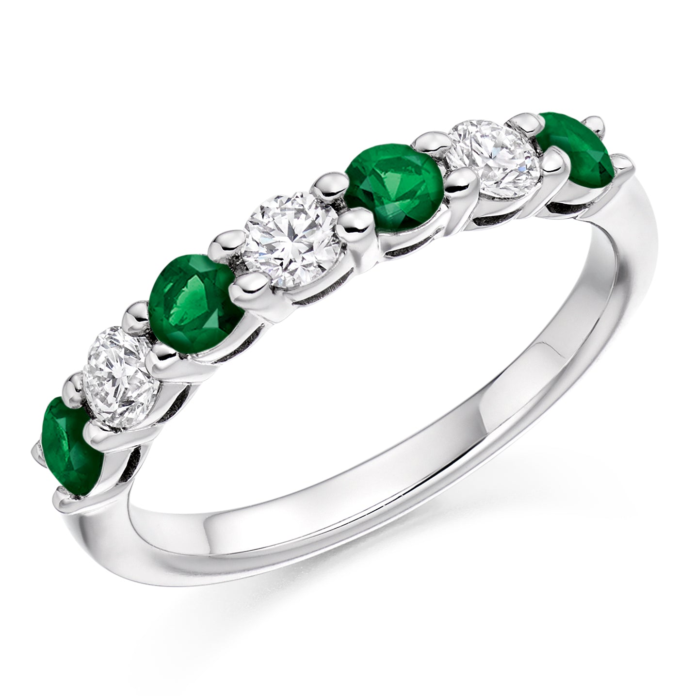 Claw Set Round Brilliant Diamond & Emerald Eternity Ring