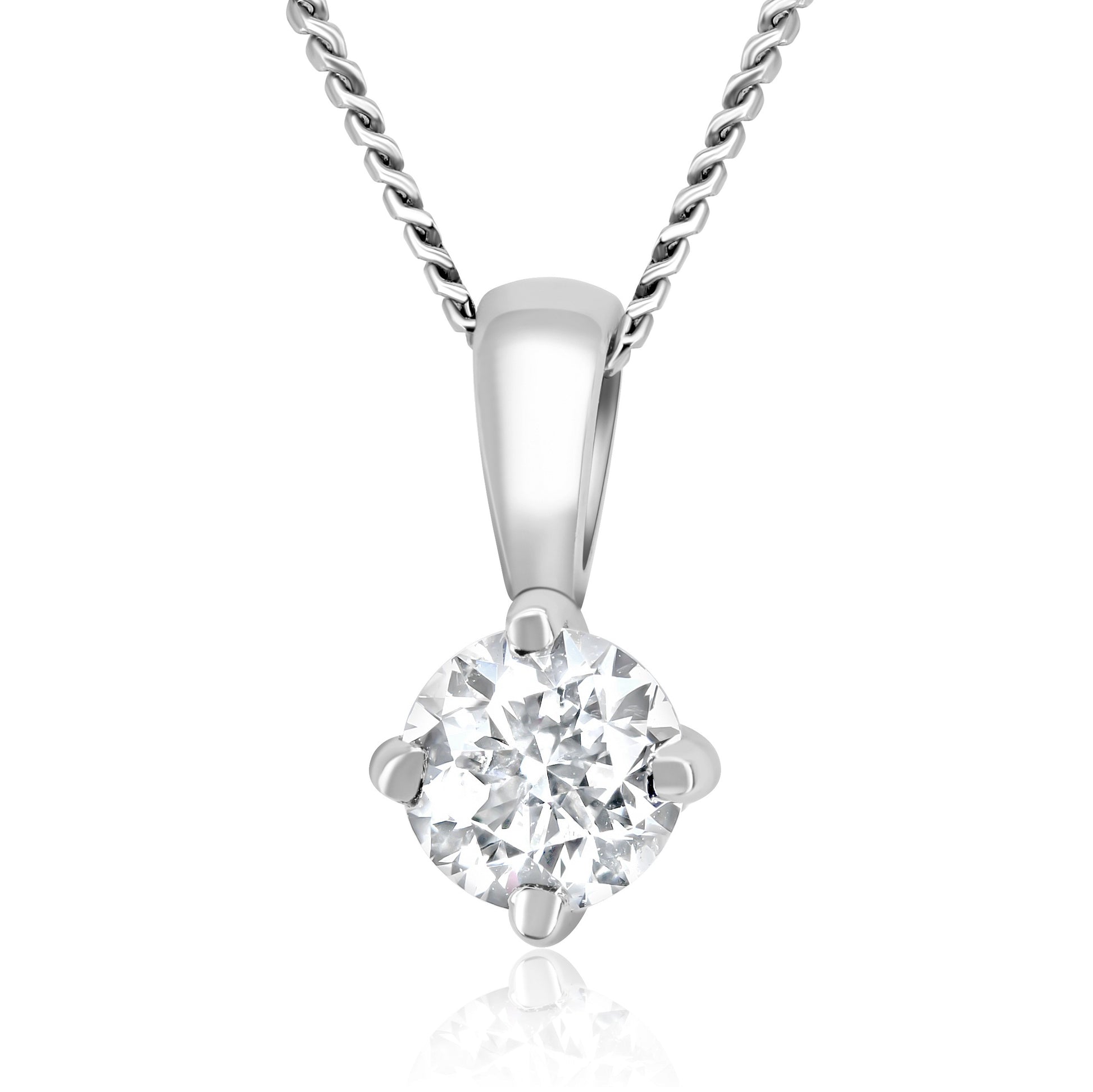 Claw Set Lab Grown Round Brilliant Cut Diamond Pendant & Chain