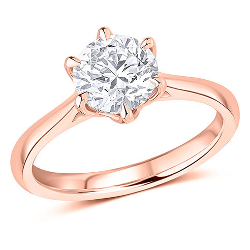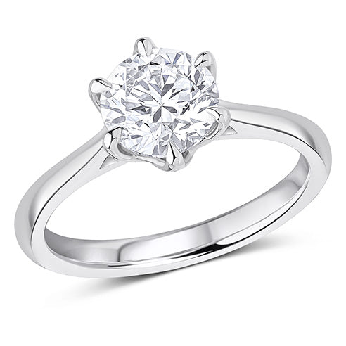 Six Claw Set Round Brilliant Cut Lab Grown Diamond Solitaire Ring