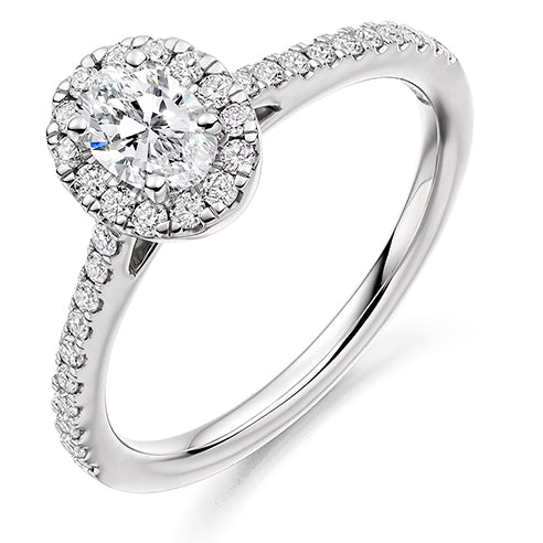 Oval Cut Halo Solitaire With Diamond Set Shoulders