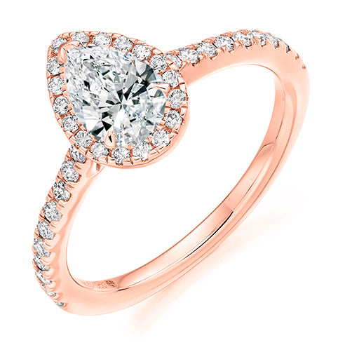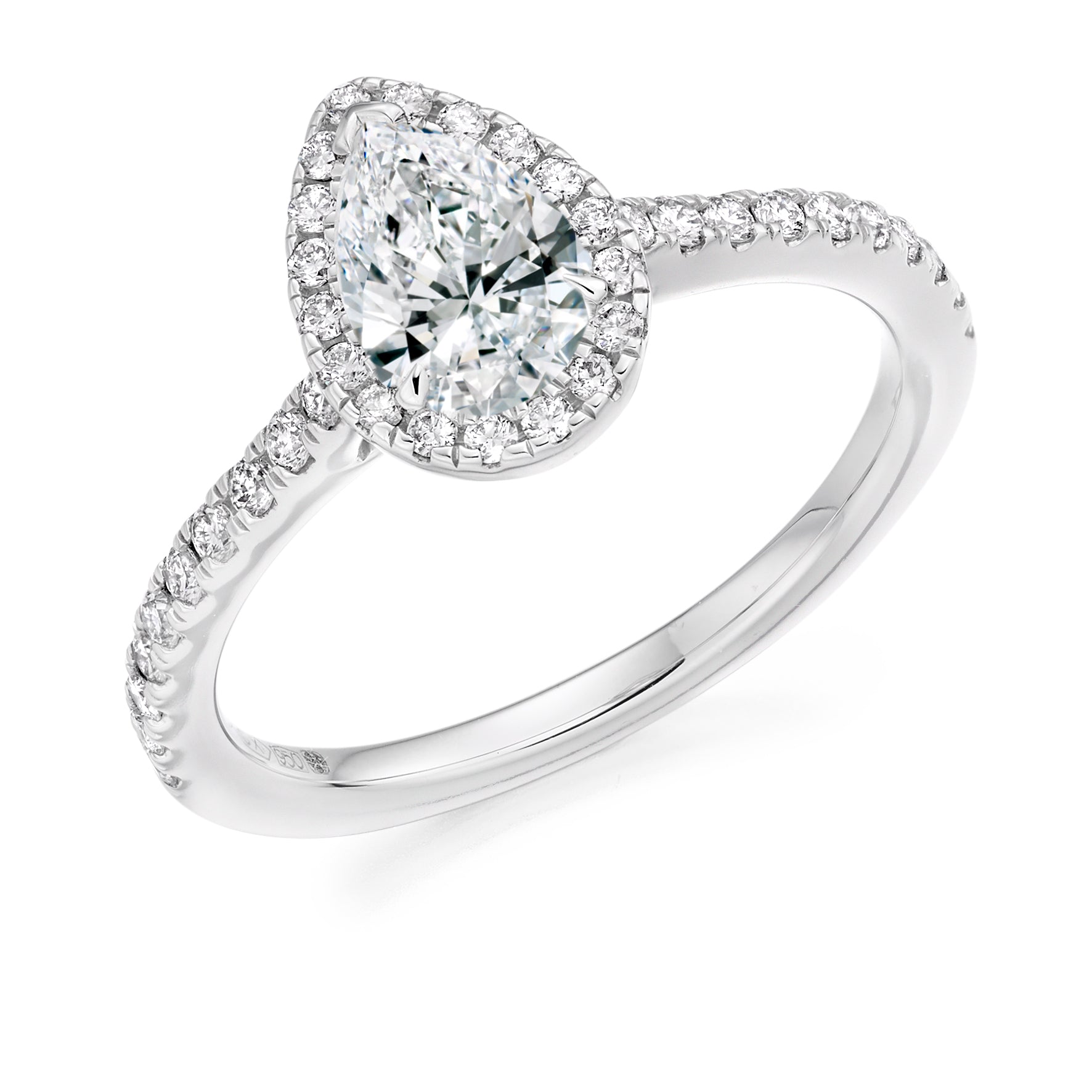 Pear Cut Halo Solitaire With Diamond Set Shoulders