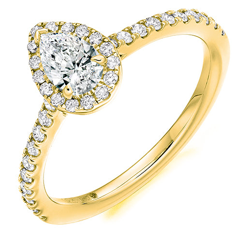 Pear Cut Halo Solitaire With Diamond Set Shoulders