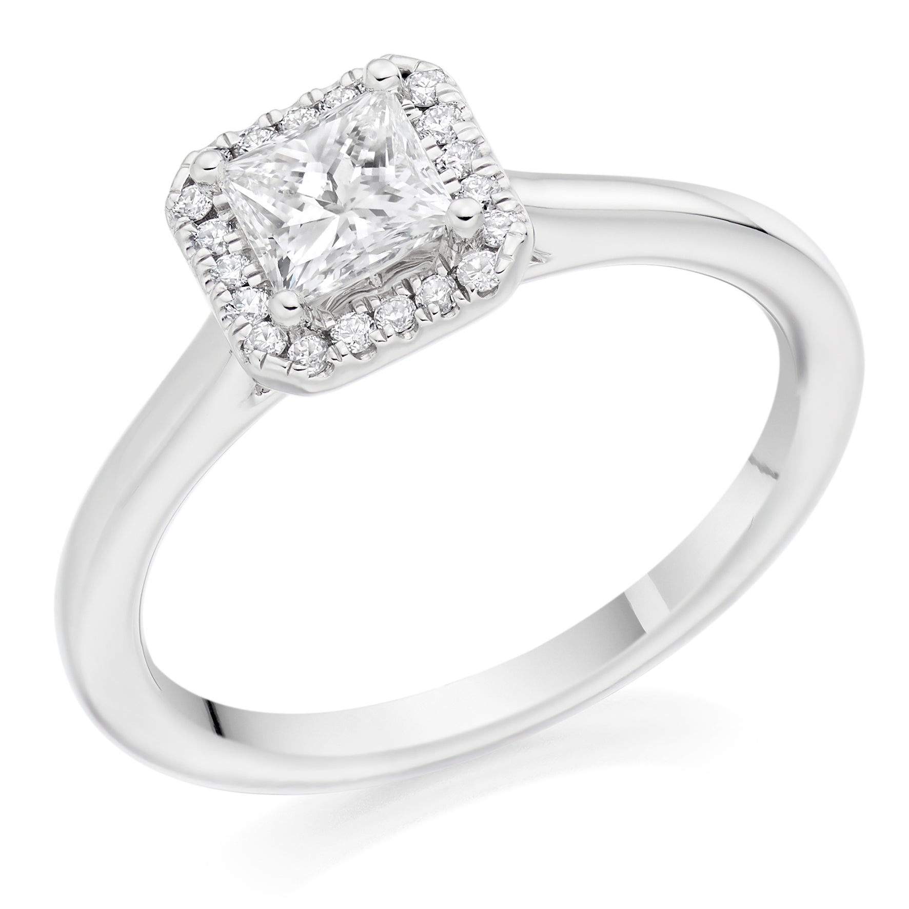 Princess Cut Halo Solitaire Ring