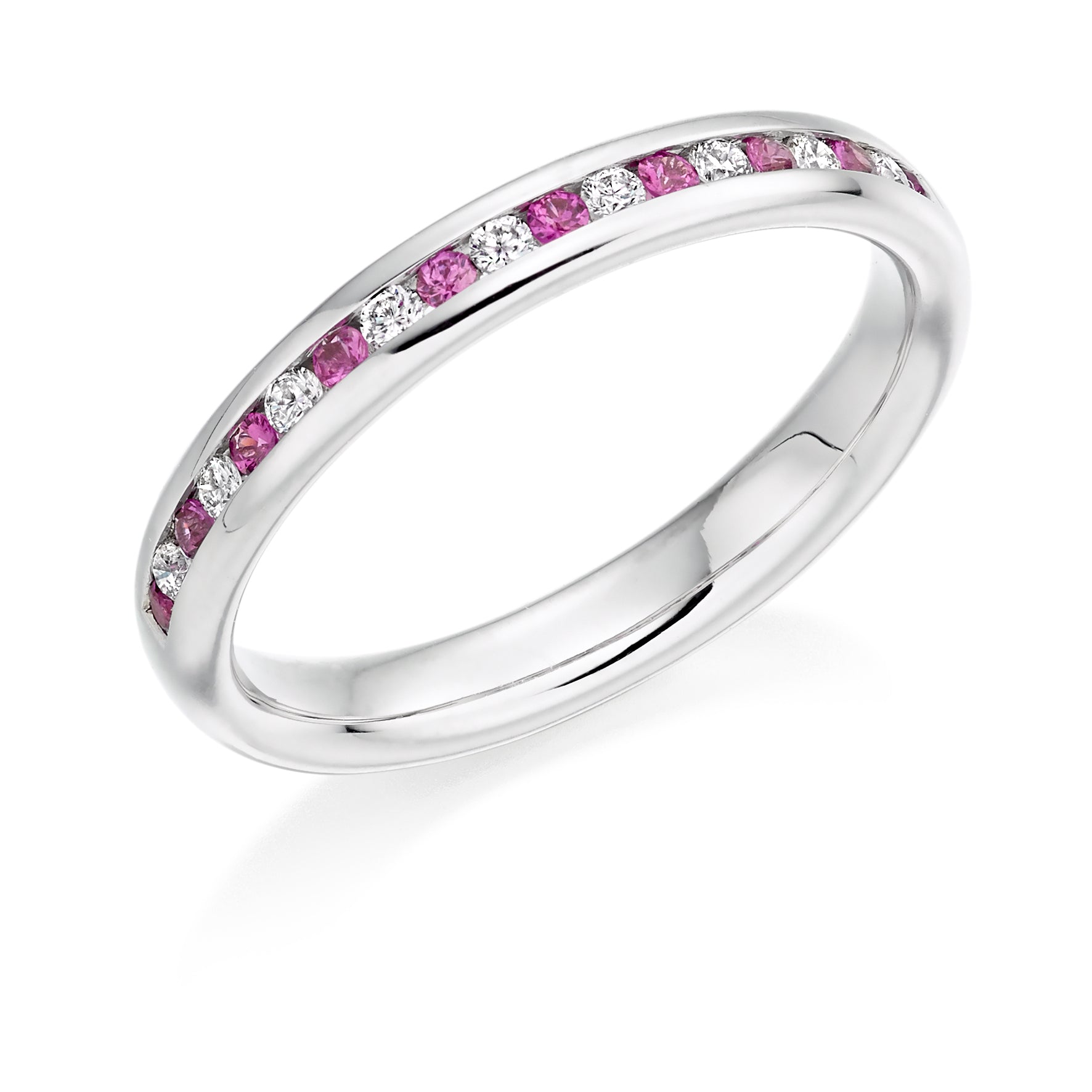 Round Brilliant Channel Set Diamond & Pink Sapphire Half Eternity Ring