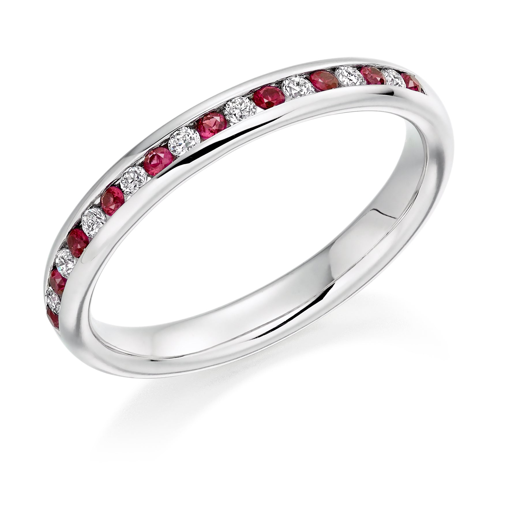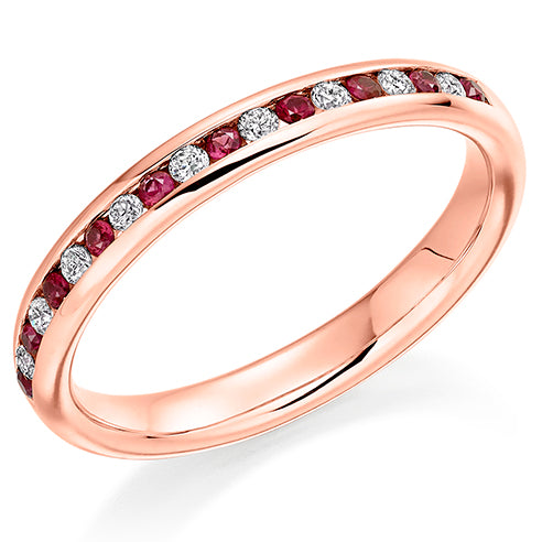 Round Brilliant Channel Set Diamond & Ruby Half Eternity Ring
