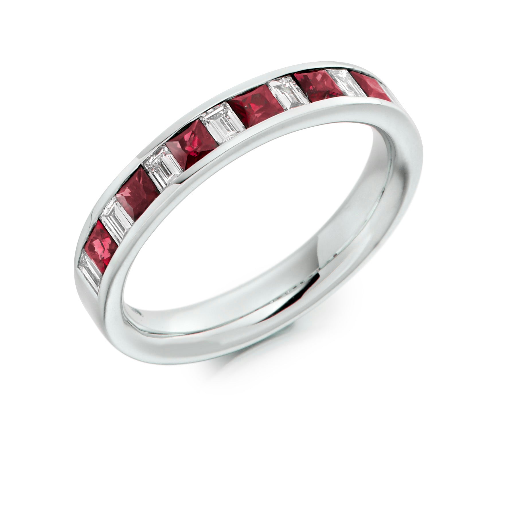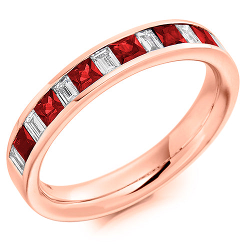 Mixed Cut Channel Set Diamond & Ruby Eternity Ring