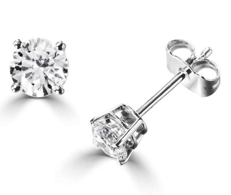 Claw Set Round Brilliant Cut Diamond Stud Earrings