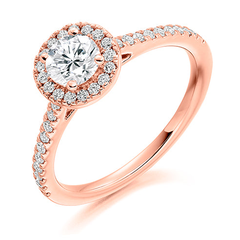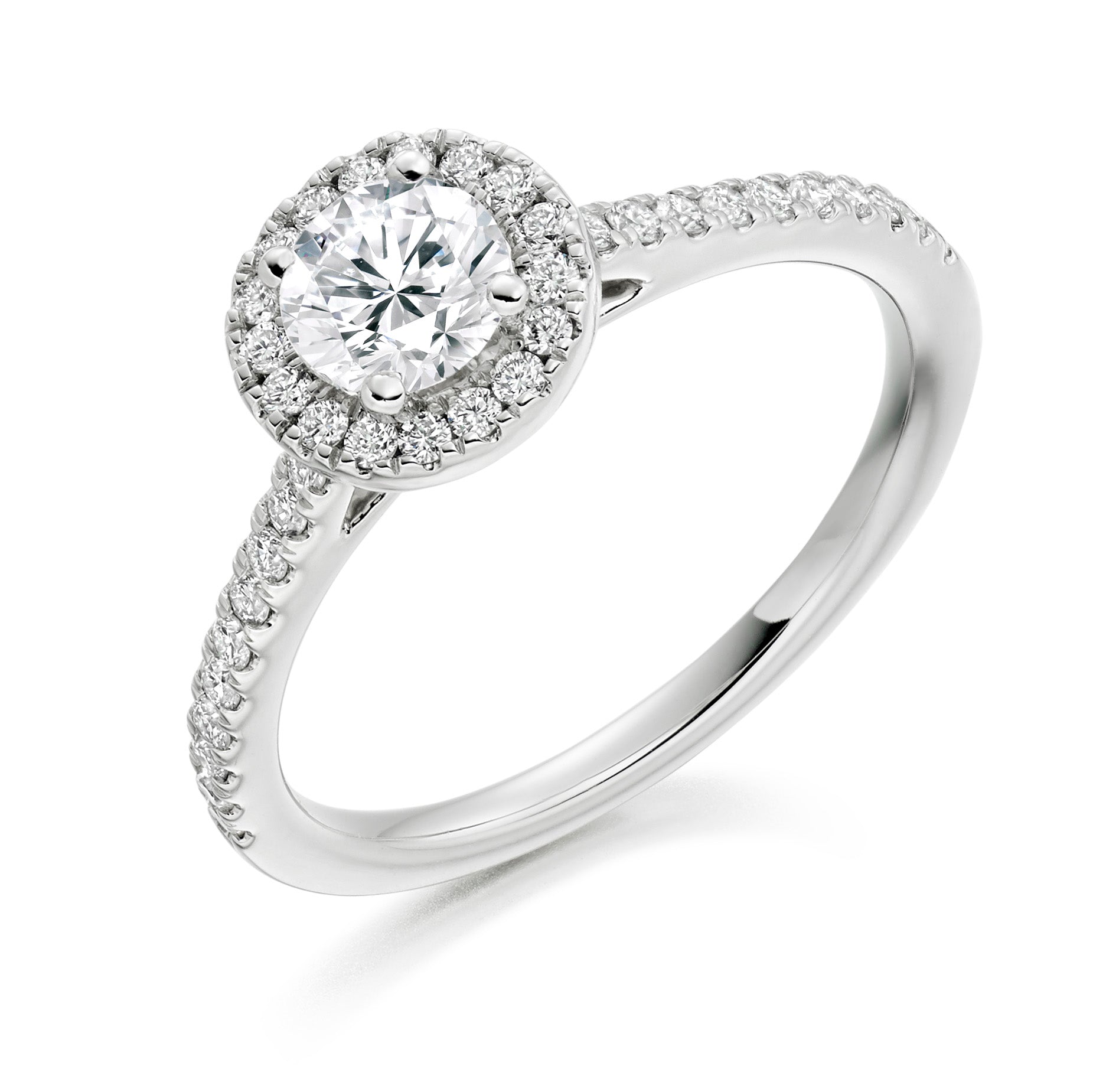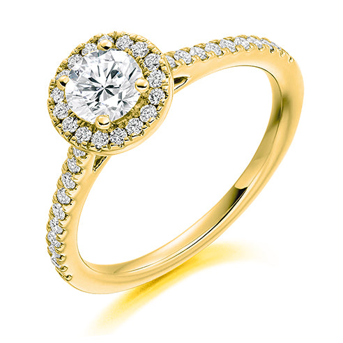 Round Brilliant Halo Solitaire With Diamond Set Shoulders