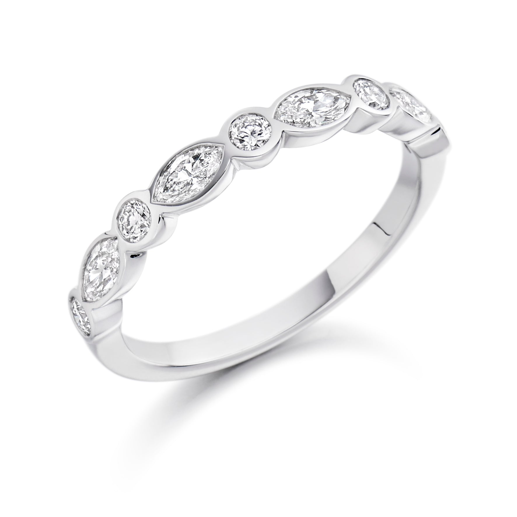 Round Brilliant & Marquise Cut Diamond Rubover Set Half Eternity