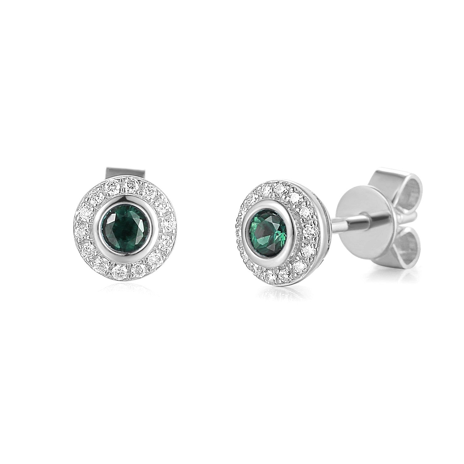 Rubover Set Emerald & micro Set Diamond Halo Stud Earrings