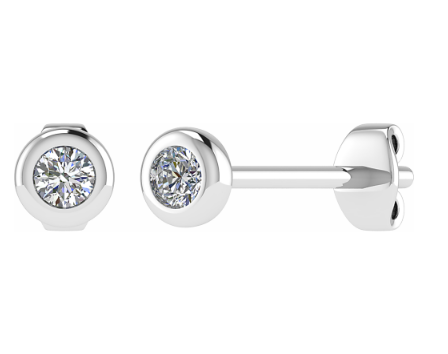 Rubover Set Round Brilliant Cut Diamond Stud Earrings